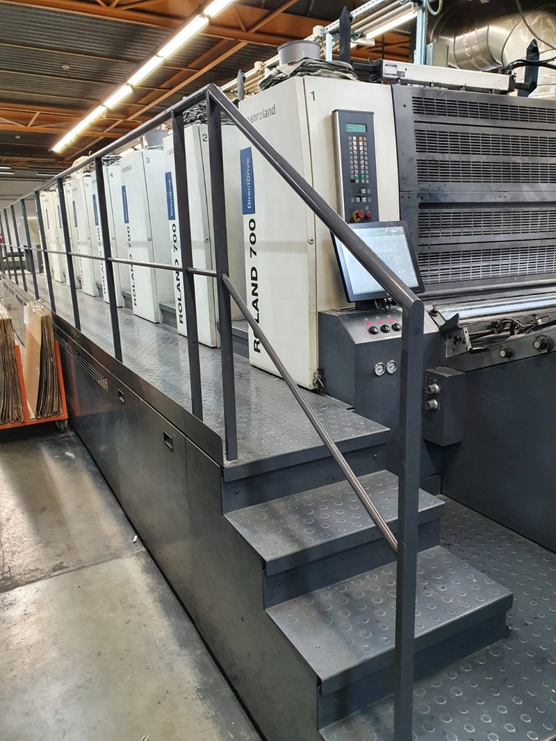 Circa 240 million impressions Equipped With:- Direct Drive- All units de-clutching CCI with colour measuring Multi CCI2D Press Pilot Fully simultaneous plate change Roland Deltamatic dampening Programmable blanket/roller/imp. cylinder wash Technotrans Beta C combined refrig/ink temp control ( Air Cooled) Alcosmart AZR Technotrans Beta F water filtration Steel plate in Feeder and Delivery Becker Vari Air system Kerstn Ionised blast in feeder Quick Start Grafix Megatronic cantronic 3000 Powder Spray Grafix powder spray removal Select air Compressor