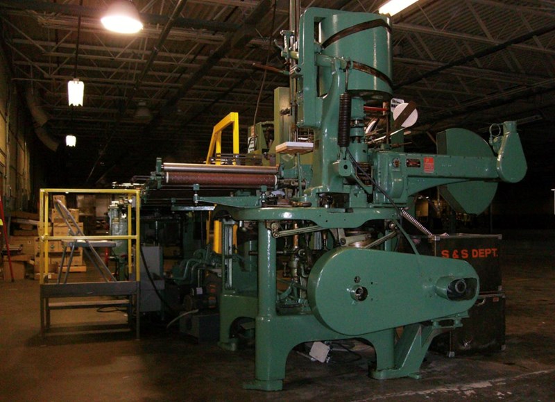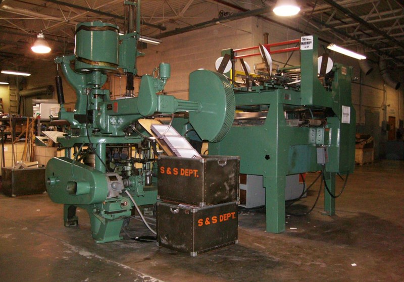 Used FMC "B" Range Box Line including as follows: Model B Wrapper Number 1026, Model MEQ-2 Quad Stayer number 2579, & Model 405 Gluer number 2245 / Conveyor