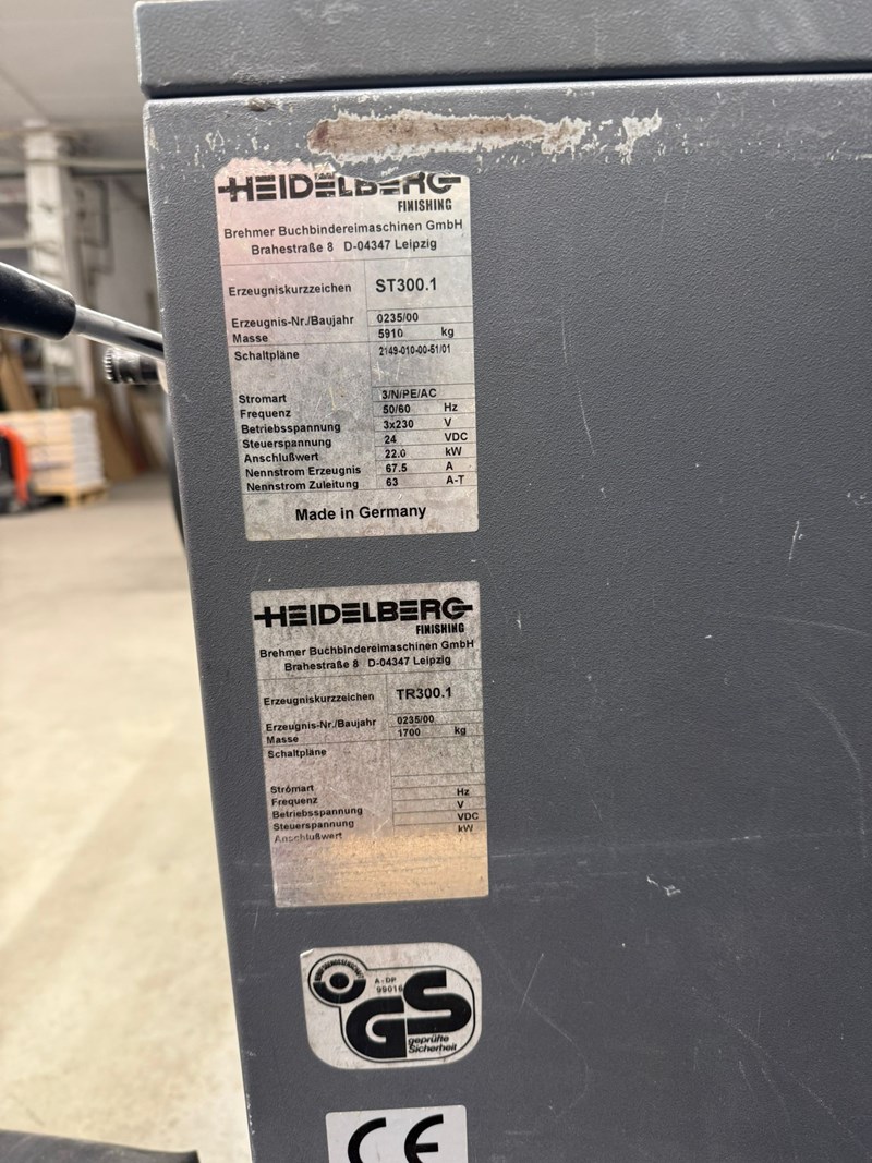 Heidelberg Stitchmaster ST 300 | 2002 Used Saddle Stitching Machine Heidelberg Stitchmaster ST 300 is a reliable and efficient saddle stitching line designed for commercial printshops and finishing houses. This 2002 model is in good working condition, currently installed, and available for immediate sale. Brand: Heidelberg Model: Stitchmaster ST 300 Year: 2002 Category: Saddle Stitching Machine Condition: In production – fully operational Origin: Germany Доступность: Немедленно Технические характеристики Maximum Sheet Size: 46 × 33 cm (18 × 12 inch) Formats – Face × Spine Untrimmed: Max. 320 × 480 mm Kocjxyqh Aot Hly T Asnd Min. 92 × 128 mm Trimmed: Max. 305 × 474 mm Min. 89 × 120 mm Product Thickness: Up to 12 mm Скорость: Maximum: 13,000 cycles/hour Minimum: 1,500 cycles/hour Stitching Heads: Up to 6 standard Gripper Opening: Low folio lip: min. 8 mm High folio lip: min. 6 mm Opening System: Vacuum opening Made in: Germany Machine Configuration This ST 300 line includes: 6 feeding stations UFA 300.1 cover feeder RIMA stacker for smooth delivery Vacuum opening system Complete and ready-to-run configuration Condition & Inspection Machine is in good working order Currently installed and can be tested Well-maintained equipment Ideal for commercial printers and finishing operations Why Choose the Stitchmaster ST 300? High production speed up to 13,000 cycles/hour Reliable German engineering Versatile format range for various booklet sizes Strong performance for short and long runs Easy integration into existing finishing lines Доступность Ready for quick sale and immediate delivery.
