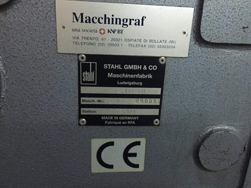 STAHL FOLDER machine Paper FOLDING machine KD78/4KTL-RD AGE 1999. CE MARKED. ROUND PILE FEEDER. SIZE OF CM 78x116. FOUR BUCKLE PLATES (SOUND HOODS), TWO ELECTRONIC KNIES (16° PAGES) AND ONE BUCKLE PLATE AFTER THE FIRST KNIFE. STACKER DELIVERY WITH PRESSING UNIT MOD. SKP. ELECTRONIC FOLDING KNIFE STAHL. Year 2004