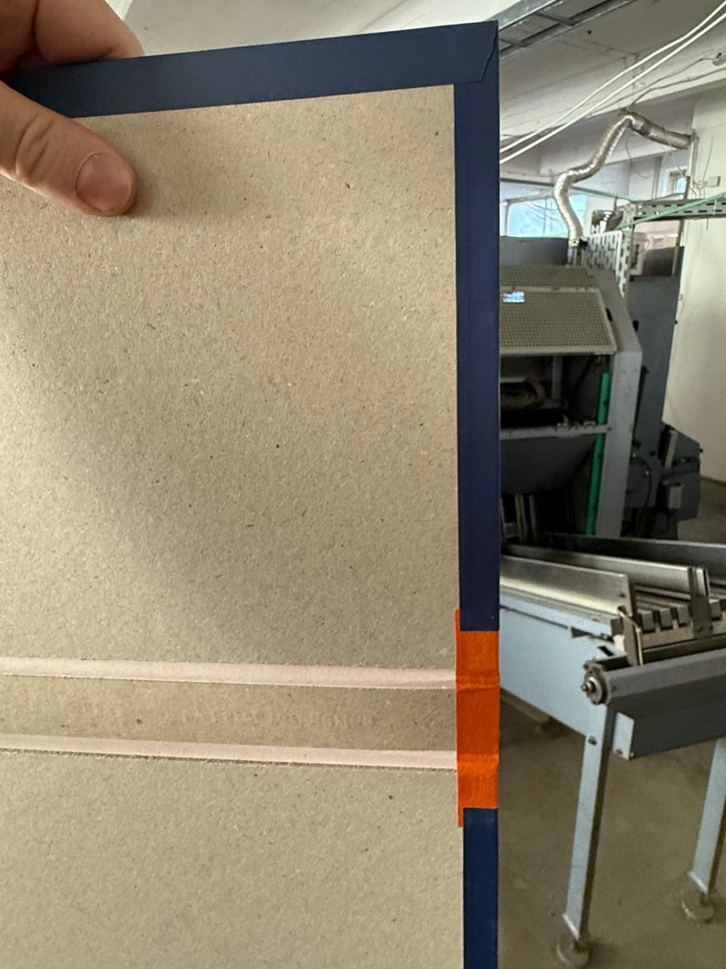 Hardcover casemaker equipped with two gluing stations and complete control sections.